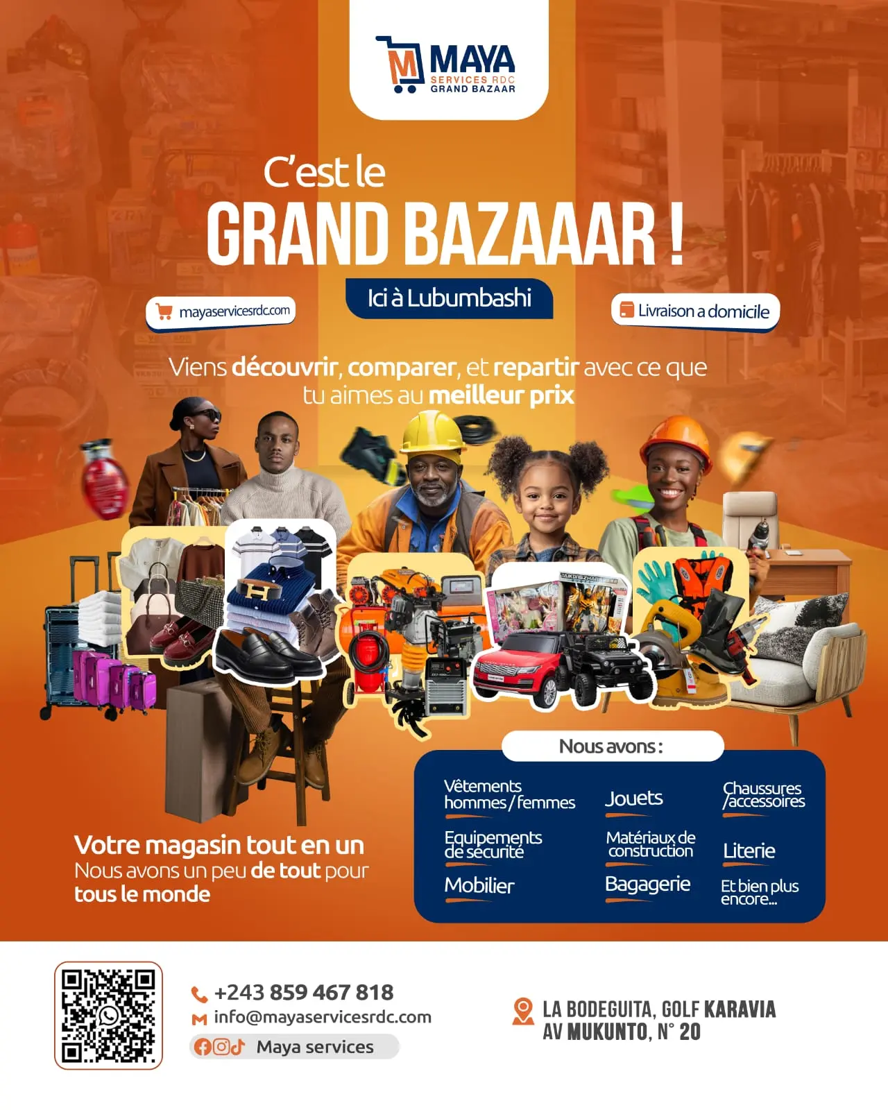 " Chez Maya Services RDC, vous trouvez tout sous un même toit : automobiles, quincaillerie, vêtements, mobilier et bien plus encore.